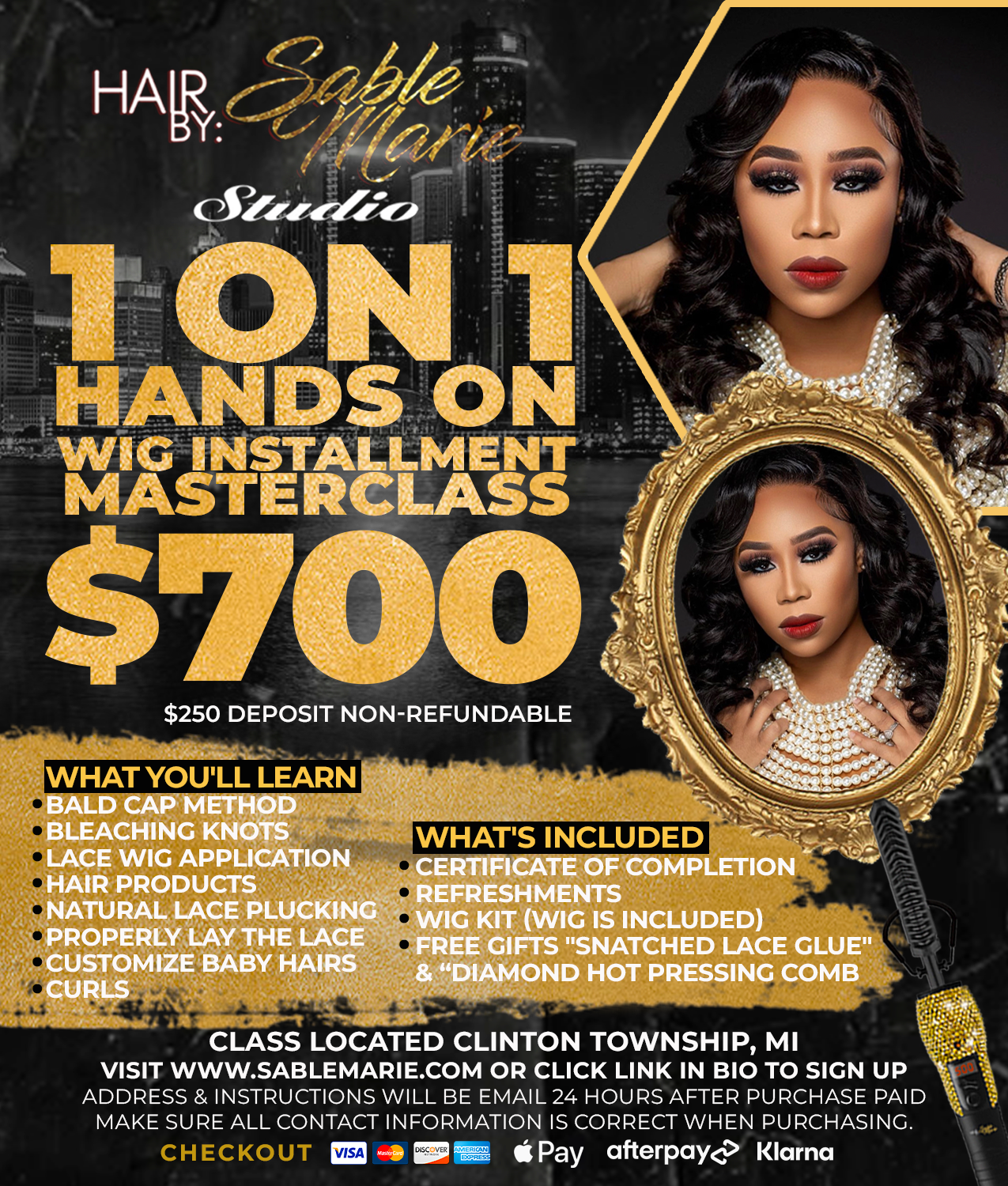 $250 DEPOSIT 1 ON 1 HANDS ON EXPERIENCE FRONTAL OR CLOSURE WIG INSTALL COURSE